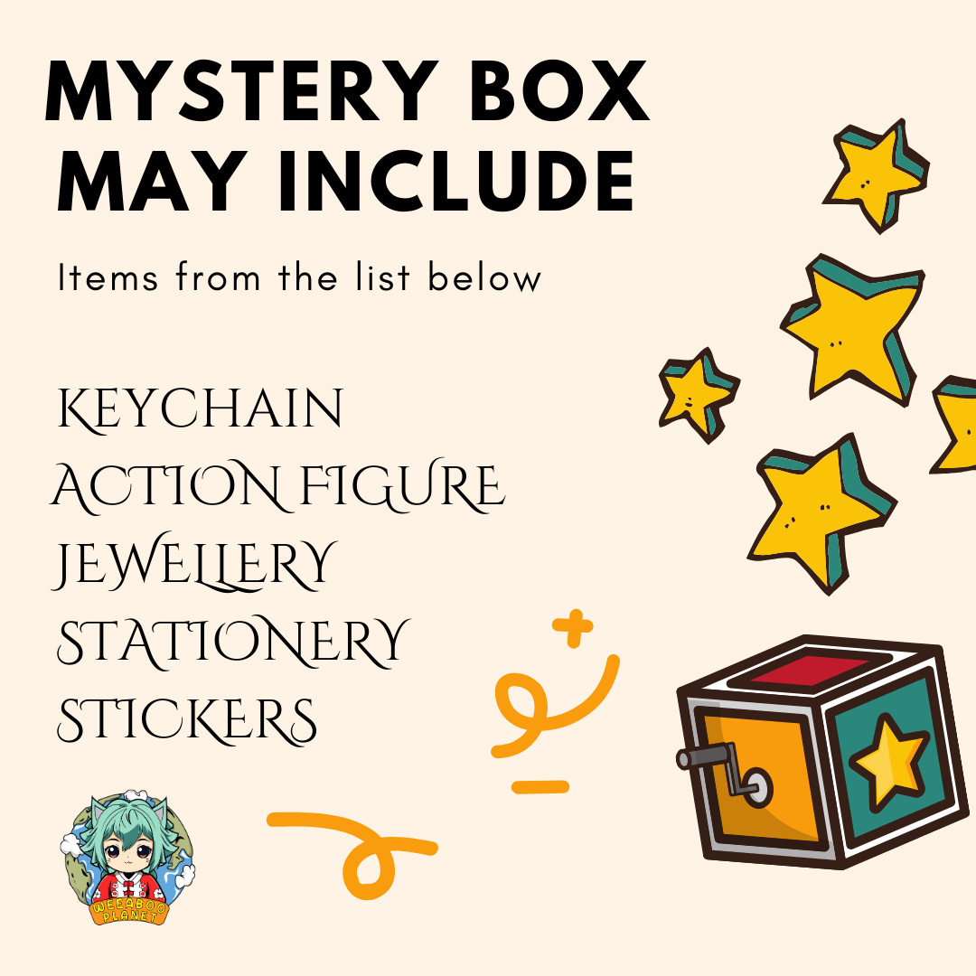 A beginner-friendly box with small, fun items like keychains, mini anime figurines , jewellery , stationary and stickers to kickstart any anime collection.